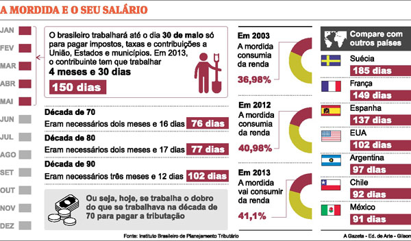 O Brasil é o país do mundo em que as empresas precisam trabalhar mais horas para pagar os impostos, segundo estudo do Banco Mundial. De acordo com o ranking, uma empresa média tem de trabalhar 2.600 horas para pagar os impostos, colocando o país na 183ª posição no ranking mundial -- o último lugar.